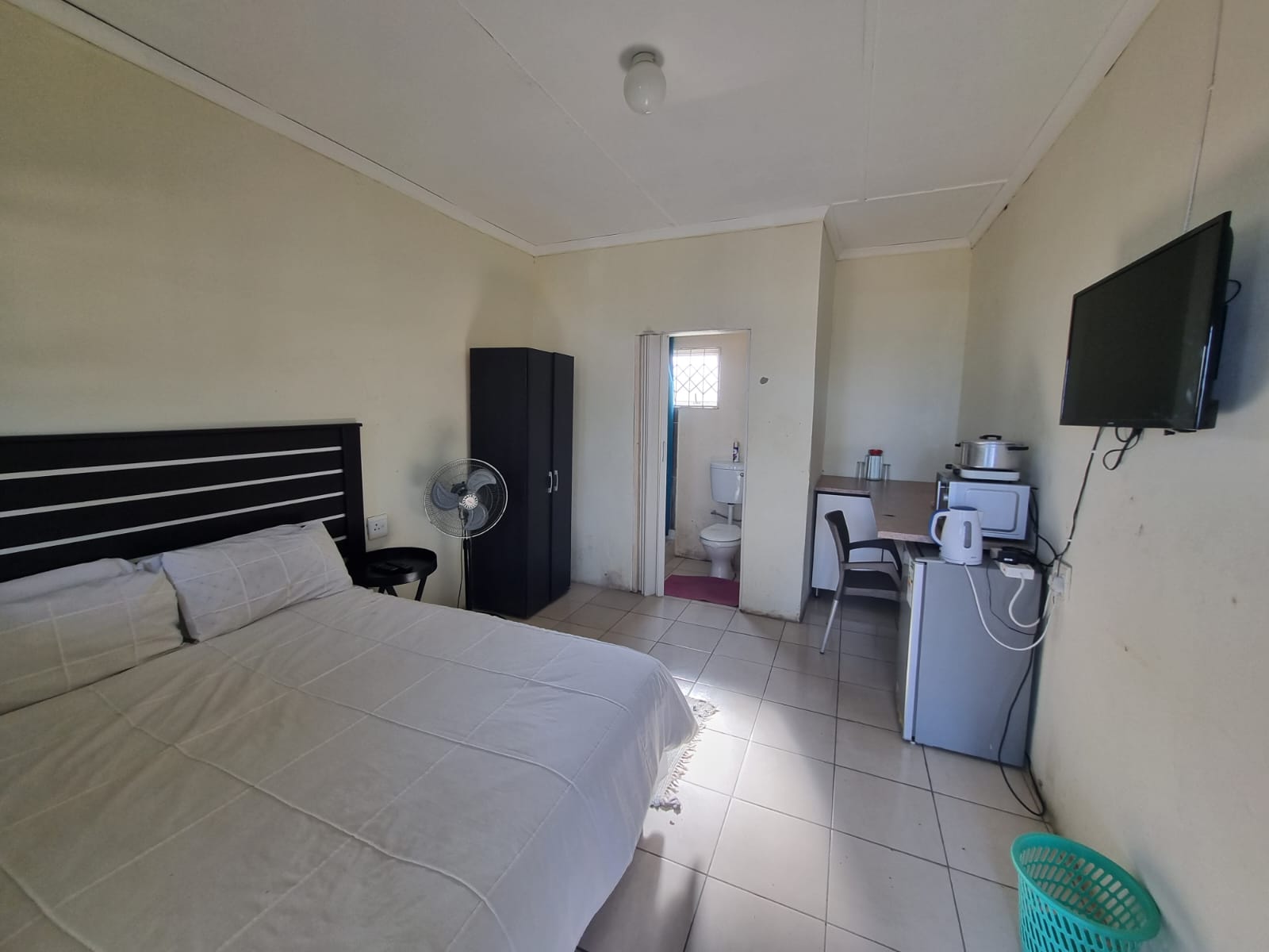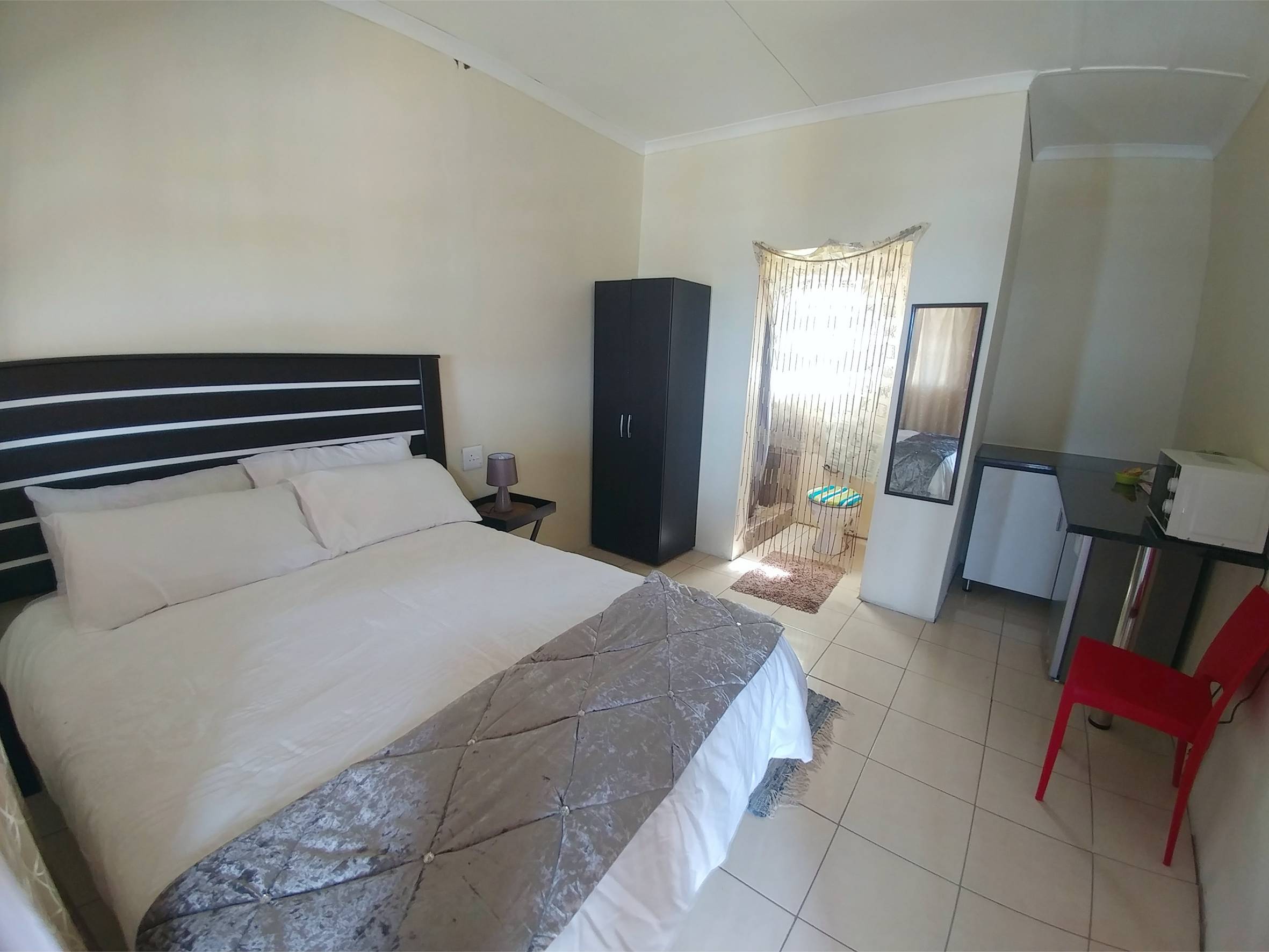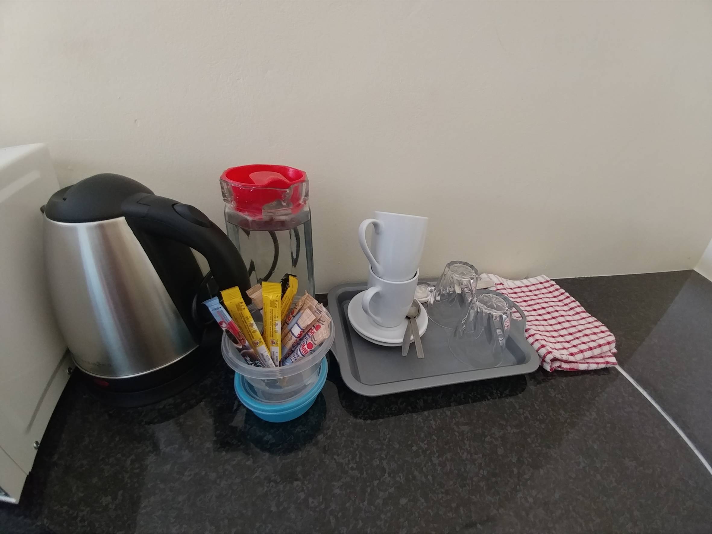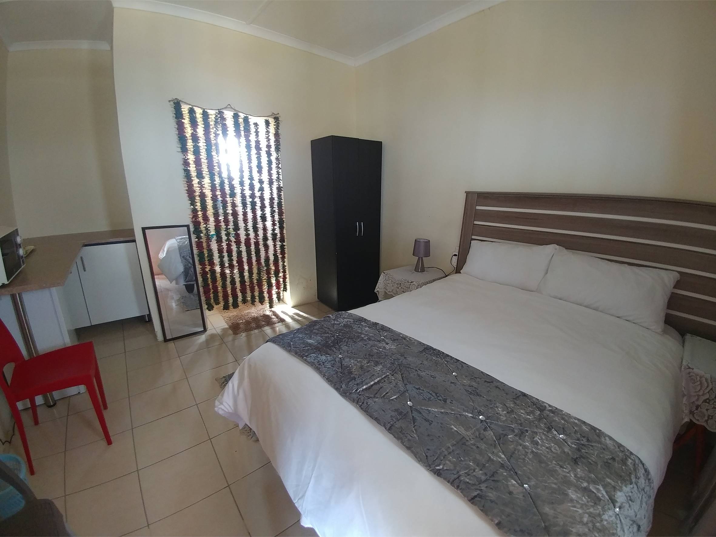 Can accommodate a max of 2 people. It has a double bed & ensuite bathroom that has a shower. The room is equipped with a small kitchen unit that includes a bar fridge, microwave, cooking utilities, stove, cutlery & glassware.