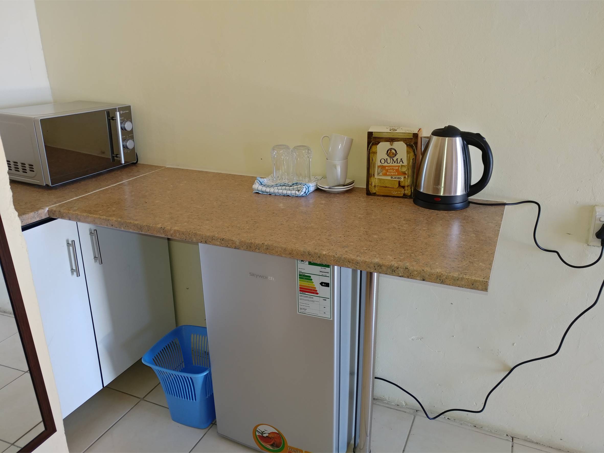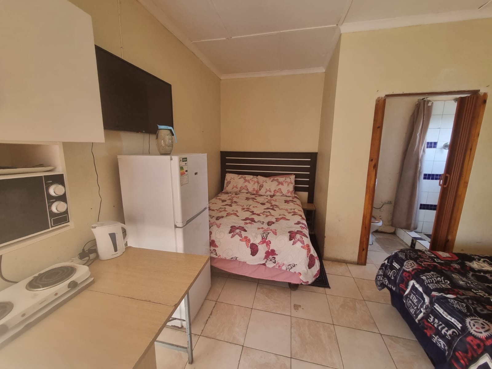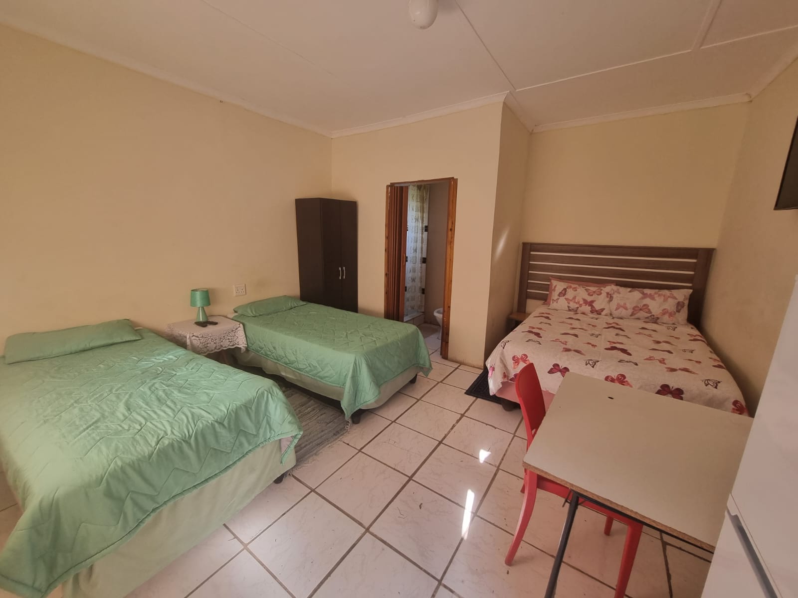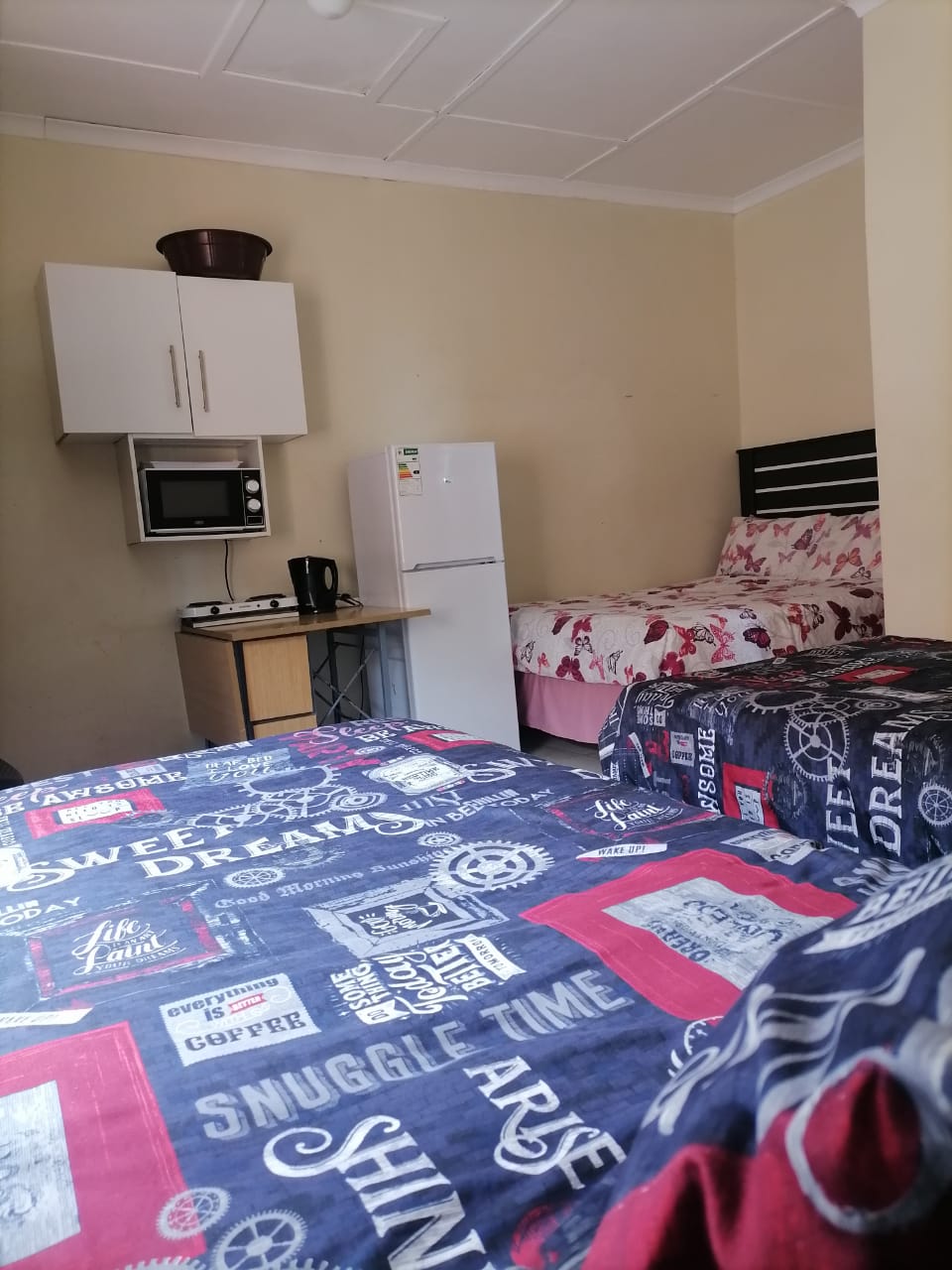 This room can accommodate a max of 5 people. Great option for families with kids or a group of friends. It has a double bed, bunker beds (single bed on top & double bed at the bottom), small kitchen unit that includes a bar fridge, microwave, cooking utilities, stove, cutlery & glassware.